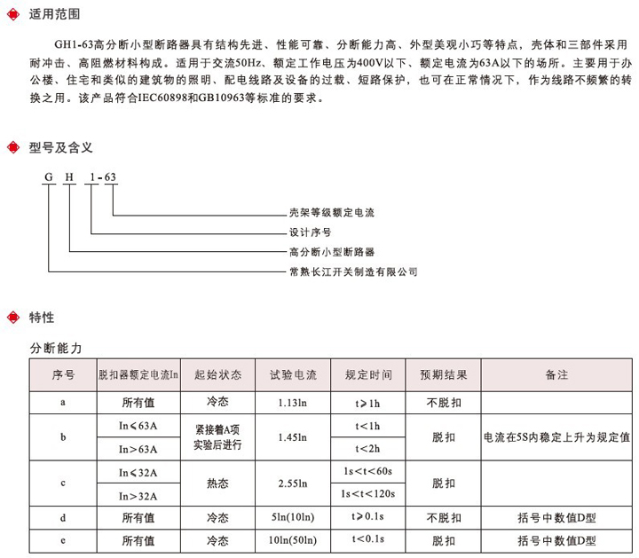 高分断小型断路器GH1-63