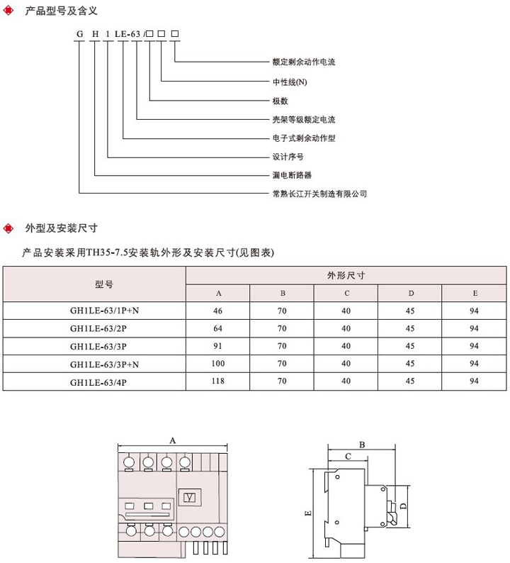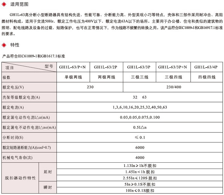 GH1LE-32系列漏电断路器("相线"+"中性"+"漏电")