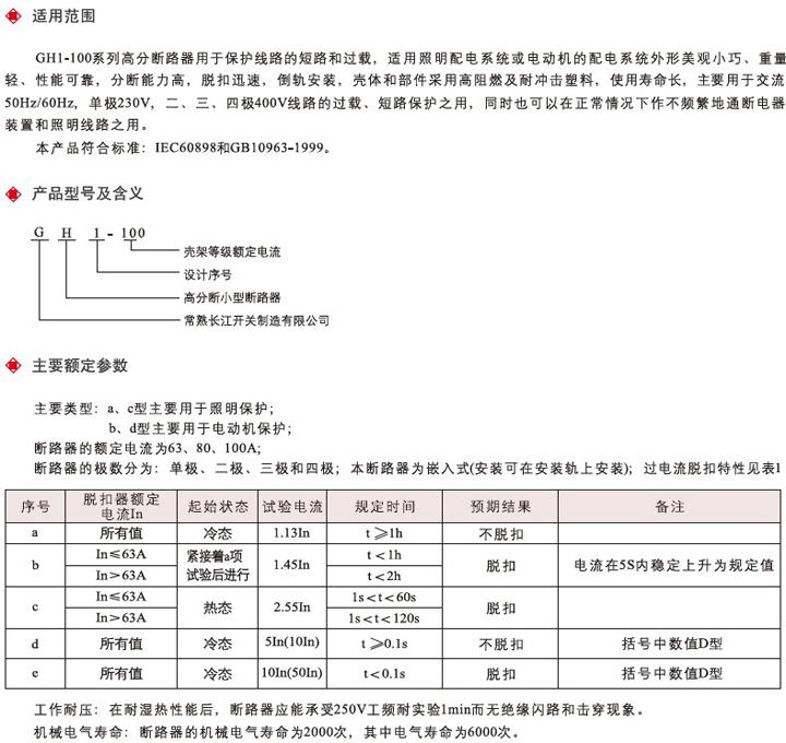 GH1-100系列高分断小型断路器