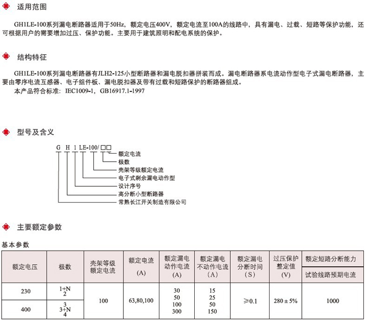 GH1LE-100系列漏电断路器